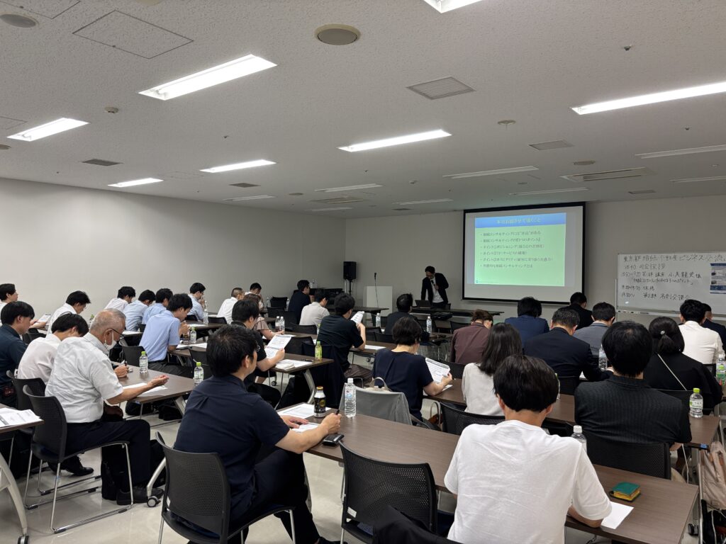 交流会は、第一部講演・第二部名刺交換会の二部構成となっております。